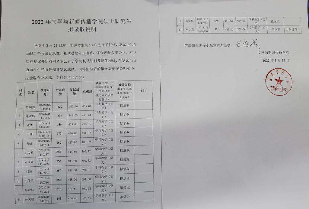 英国365集团官网学科教学(语文)一志愿拟录取名单公示