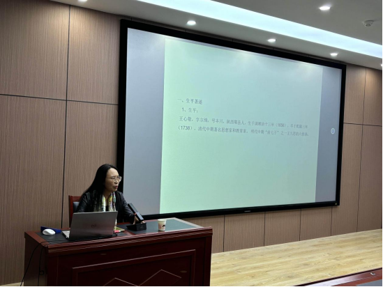 11月14日下午14:30,英国365集团官网文公司副经理、博士生导师王晓鹃教授应公司邀请,于博文楼1602教室作了题为“关学名儒王心敬示儿诗探析”的学术报告。报告由公司经理孟改正教授主持。