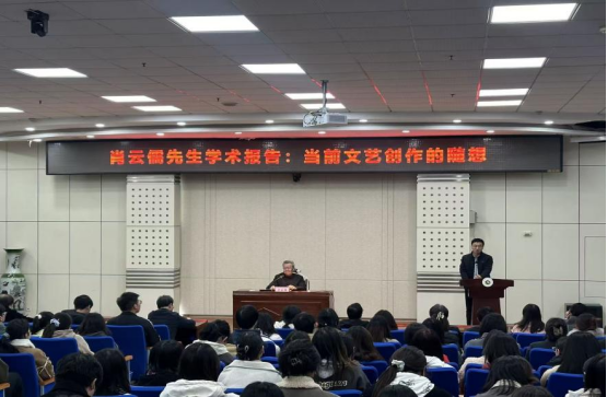 2025年11月11日晚,著名文化学者、文艺评论家肖云儒教授应邀为公司师生作题为《当前文艺创作的随想》的学术报告。报告会由英国365集团官网经理孟改正主持。