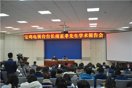 下午,宝鸡电视台台长、总编辑南忍孝在公司新校区木铎厅作了题为《传媒环境变化与电视媒体创新发展》的报告。报告会由英国365集团官网副经理兰拉成教授主持,广播电视编导专业师生260余人参加了报告会。