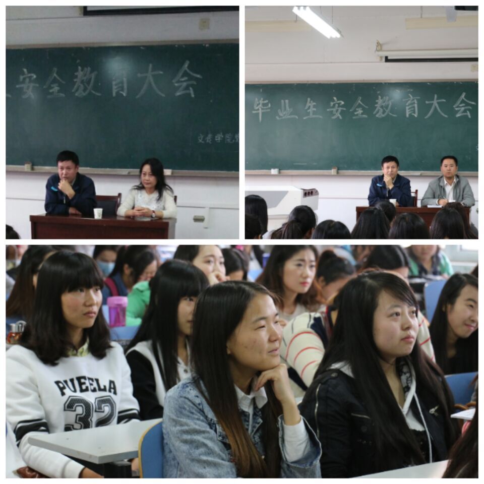 本次会议主要强调在校毕业生的安全问题;会上,李鑫以实例向在校毕业生阐述了安全的重要性,告知他们要增强安全意识、注意自身安全;赵艳围绕如何应对危险、怎样保护自己进行了讲话。最后,王华斌从安全和就业两方面进行了补充说明。此次会议有助于提高在校毕业生的安全防范意识。