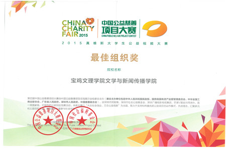 近日,公司微电影作品《归》入围并获“2015真维斯老员工公益视频大赛”优秀作品奖,文传院获最佳组织奖。宝鸡电视台“图说宝鸡”栏目于10月6日19:55、23:00、7日12:47对微电影《归》进行报道介绍。