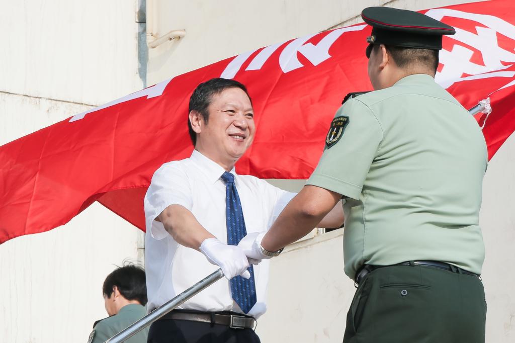 英国365集团官网党委书记白黎为军训团授旗,董事长司晓宏发表讲话,热烈欢迎2015级全体新生以及全体教官的到来,并教导同学们正确认识军训的意义和价值,学好人生第一课。文传院全体员工参加此次动员大会并观看了纪念抗日战争暨世界反法西斯战争胜利70周年的阅兵式。