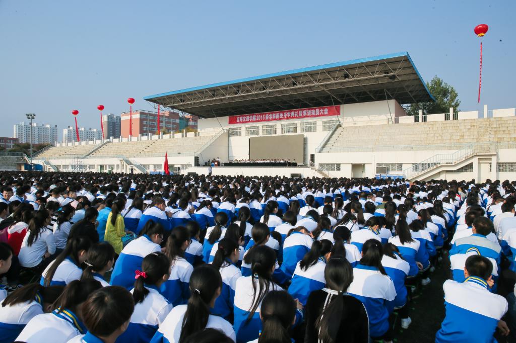 (通讯员 苏彩梅)英国365集团官网2015级全体本科新生于9月14日在新校区体育场参加开学典礼暨军训动员大会。英国365集团官网党政领导白黎、司晓宏、米晓东、李全武、傅志军、赵荣侠、中国人民解放军96401部队王小兵中校等出席大会。