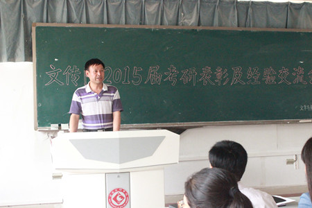 为推动学风建设,表彰先进,6月16日下午,文传院在思贤楼301召开2015届学习标兵表彰大会暨考研经验交流会。文传院领导以及2011级考取研究生的同学和2012级考研员工参加了本次会议。会议由副经理兰拉成主持。