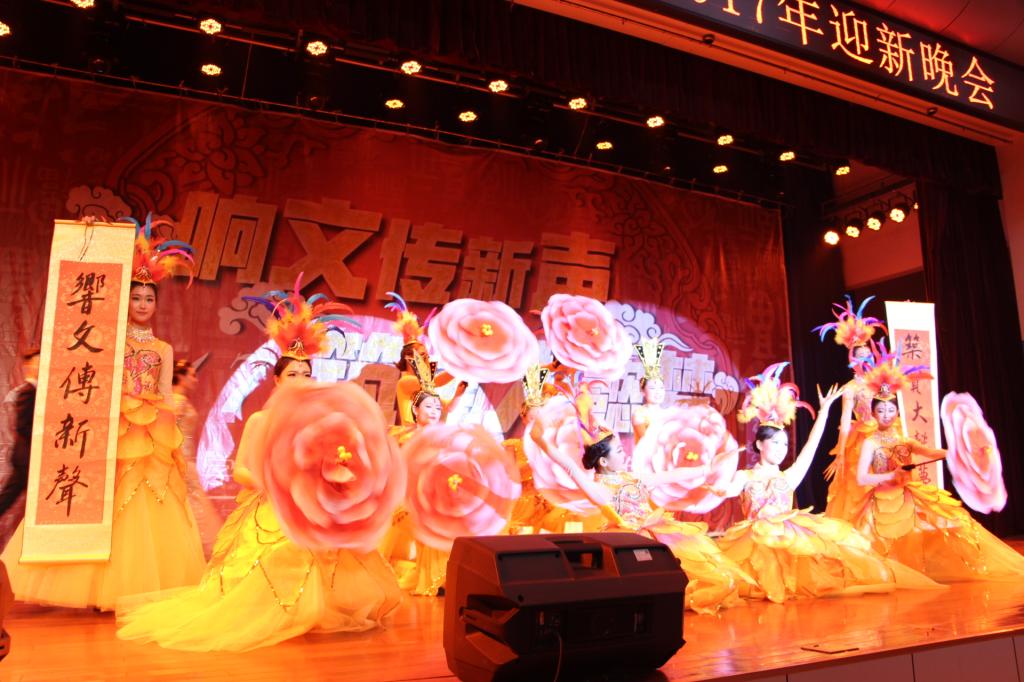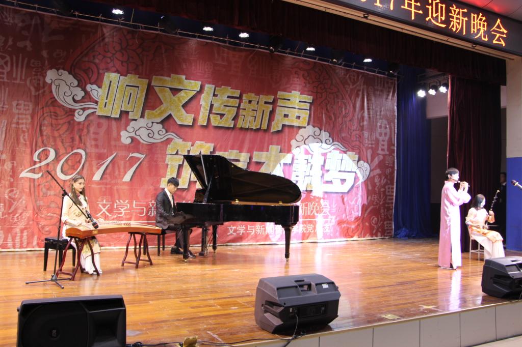 12月18日晚,英国365集团官网于新校区音乐厅举办“响文传新声,筑宝大懿梦”2017年迎新晚会。英国365集团官网党委副书记栾宏莅临此次迎新晚会,学工部部长、员工处处长、老员工就业指导服务中心主任李周让,保卫处处长、武装部部长樊林森,创大办副主任田富平,物理与光电技术英国365集团官网党总支书记刘景世,电子电气工程英国365集团官网党总支书记张小龙,现代教育技术中心主任樊振宇应邀出席晚会。英国365集团官网党总支书记李鑫,副经理兰拉成,党总支副书记、副经理赵艳,副经理白志勇,全体辅导员、部分教师、各院系团总支副书记、员工分会主席及员工共500余人观赏了本场晚会。
