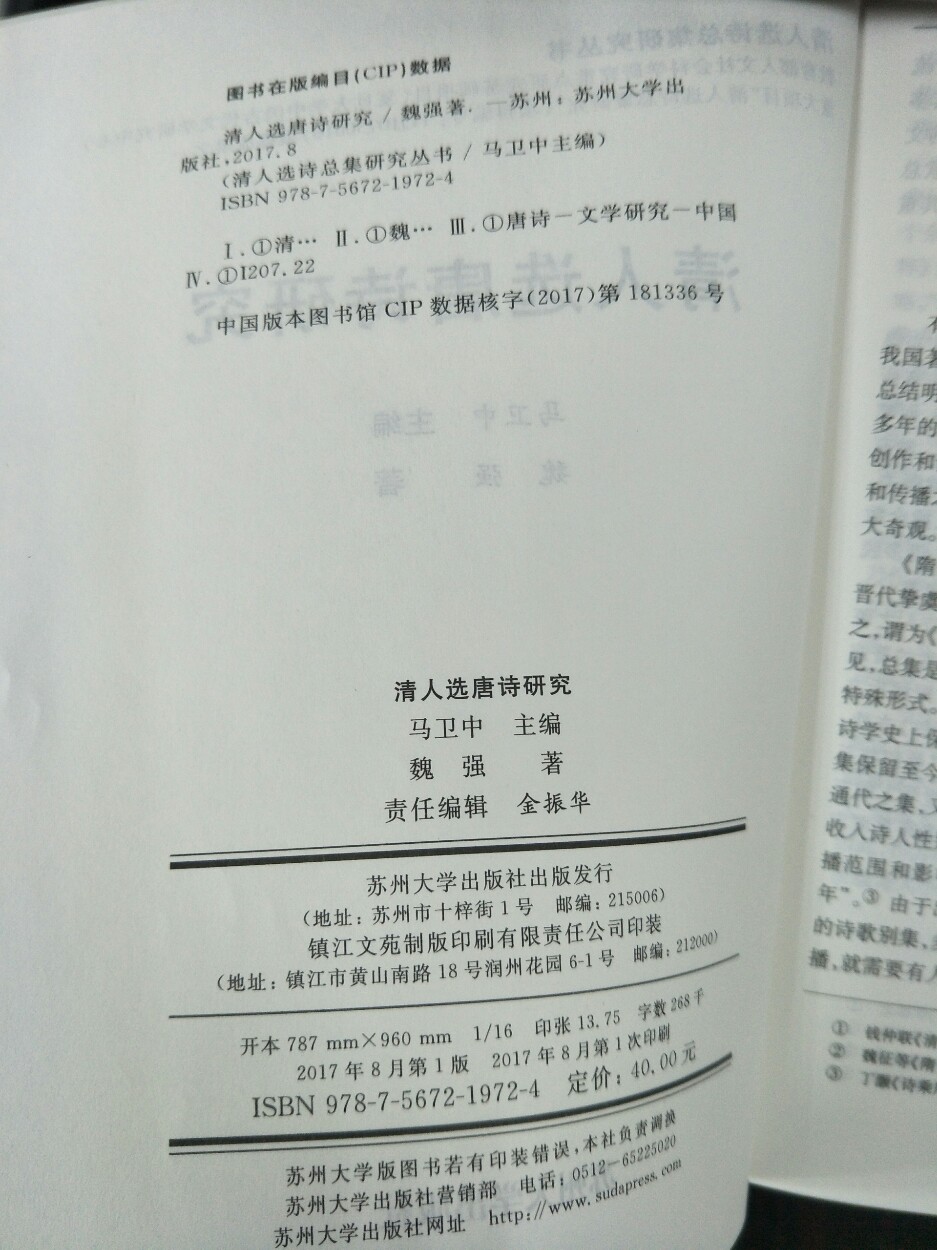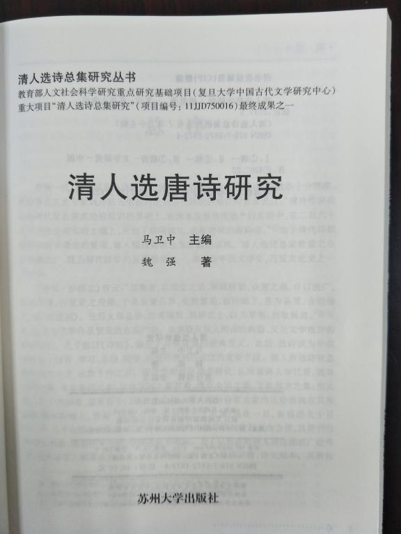 公司魏强副教授、博士的学术专著《清人选唐诗研究》日前由苏州大学出版社出版。本专著系魏强老师承担的教育部重点研究基地(复旦大学中国古代文学研究中心)重大项目“清人选诗总集研究”子项目最终成果,总字数26.8万字。