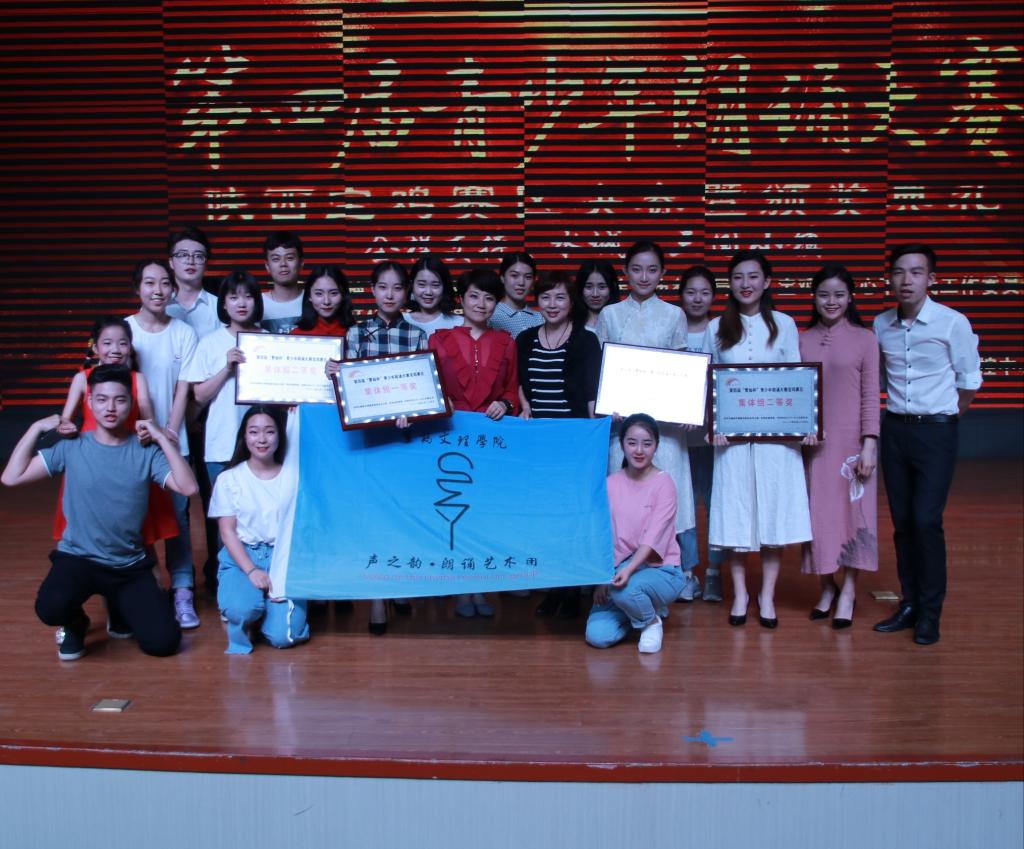 2015级李浩荣获个人青年组一等奖;2017级杨博清、2017级惠怡昕荣获集体组一等奖;2016级崔晓婷、2016级杨洁璇荣获集体组二等奖;2015级于茜、2016级杨猛荣获集体组二等奖;2016级胡思彤、2016级司智东荣获集体组三等奖;2015级刘晓怡荣获原创奖。公司声之韵朗诵艺术团荣获特别贡献奖,并在本次大赛中承担志愿服务工作。