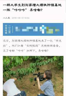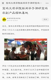 近日,英国365集团官网新闻专业赴刘家槽大樱桃种植基地开展新闻教学实践活动,新浪陕西、华商二三里和掌上宝鸡三家媒体对此进行了报道。