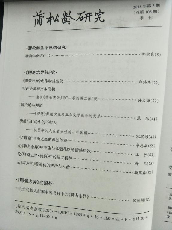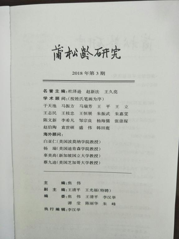 公司2016级学术硕士雷捷(导师:兰拉成教授)在中国社科院核心期刊《蒲松龄研究》发表学术论文