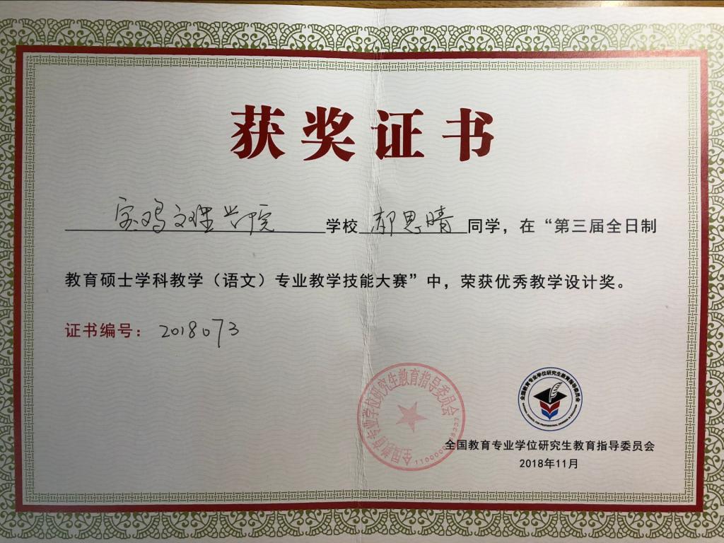 | 全国教学设计优秀奖 |