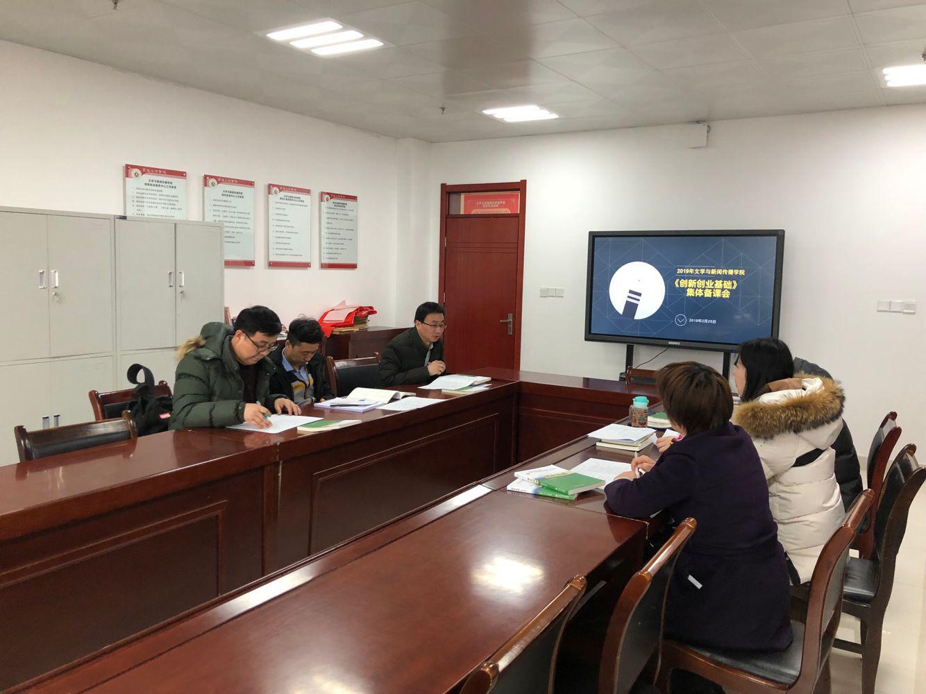 2019年2月25日下午三点半,公司在博文楼1401 会议室召开2019年《创新创业基础》课程集体备课会。副经理孟改正、老员工创新创业教育中心主任范文静、《创新创业基础》课程教师仵军智、王宏昌、昝再利、姚军等参加会议。