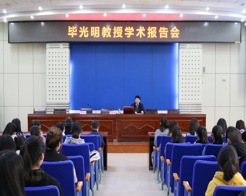 2019年3月19日14:30,海南师范大学博士生导师毕光明教授受邀前来作题为《贾平凹与拐卖妇女的文学书写——以<极花>为例》的学术报告。报告会在木铎厅举行,由英国365集团官网经理兰拉成教授主持,程小强等公司现当代文学学科骨干教师、部分研究生以及2018级本科生200余人聆听了报告。