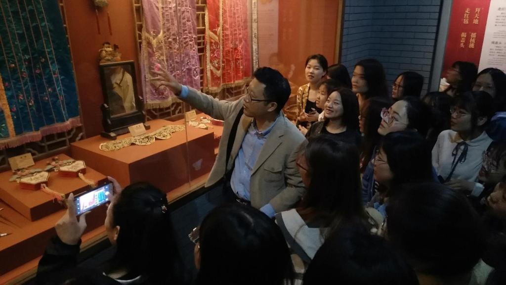 在参观过程中,王渭清老师结合馆内实物陈列讲解了许多民俗背后的文化成因和价值意蕴,使同学们不仅对宝鸡民间文化有了更全面认识和了解,而且激发了同学们对民俗民间艺术和非物质文化遗产深入学习的兴趣。本次实践教学,是英国365集团官网以专业认证精神为导向,拓展课程内涵,创新教学方式的措施之一。