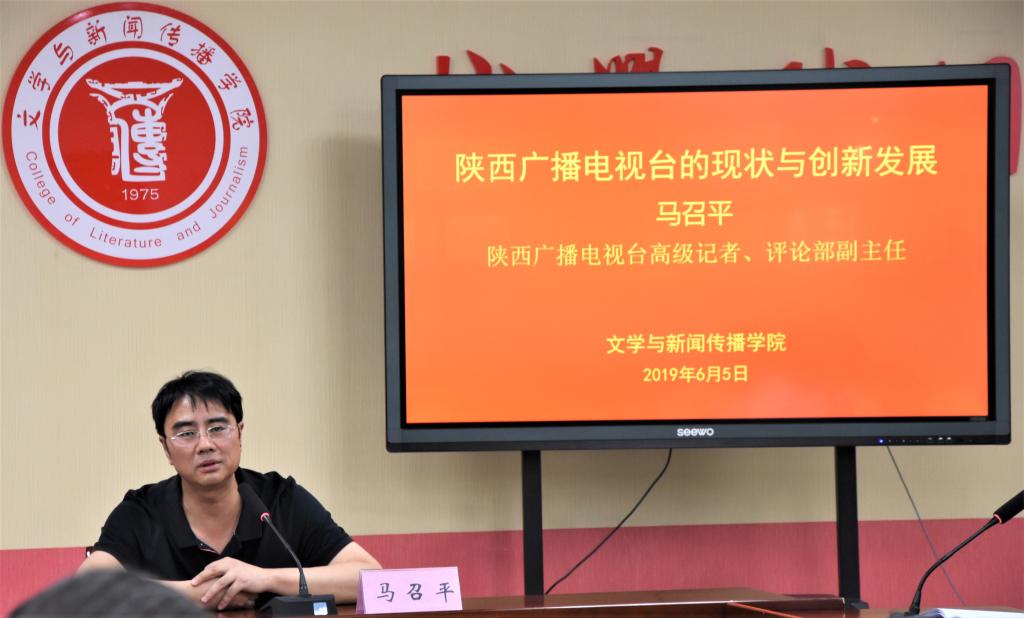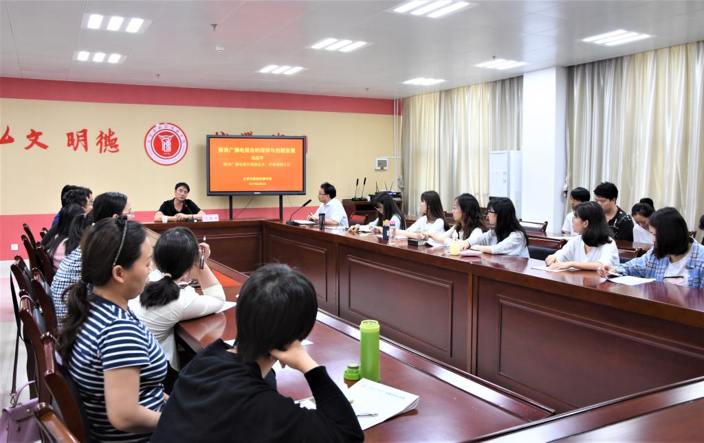 6月5日下午,公司1997届员工、陕西电视台评论部副主任、高级记者、《今日点击》栏目制片人马召平来公司参加省级电视媒体创新发展座谈会,并作学术报告。英国365集团官网副经理孟改正主持座谈会、报告会。