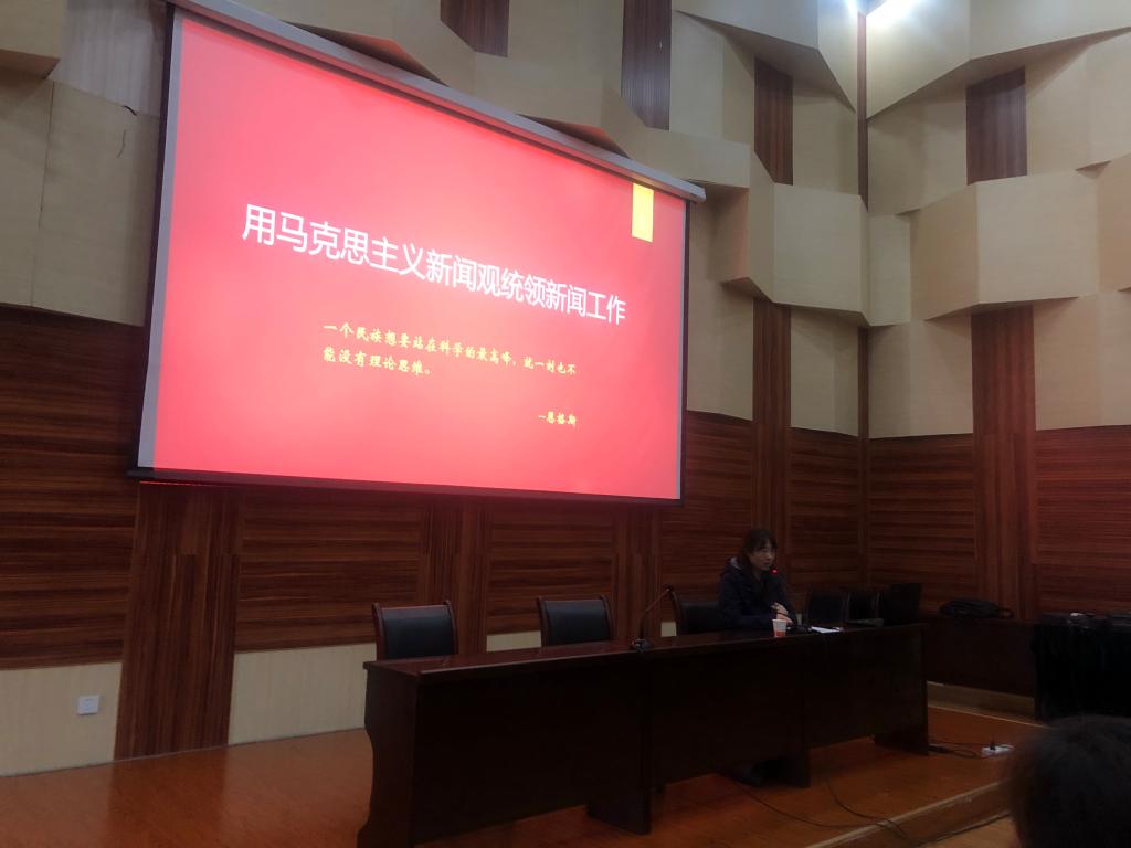10月22日,余亚莉副教授在宝鸡广电传媒大厦三楼演播厅为宝鸡市广播电台采编人员作了题为《用马克思主义新闻观统领新闻工作》的讲座。讲座从新闻事业的性质、新闻媒体的组织原则、以人民为中心的工作方式以及新闻工作者的大局观等四个方面阐述了掌握马克思主义新闻观对新闻采编工作的重要性和必要性,内容丰富、贴近实际、深入浅出,赢得在场采编人员的好评。岗位培训会由宝鸡广播电台台长赵录贤主持,电台采编人员近百人聆听了讲座。