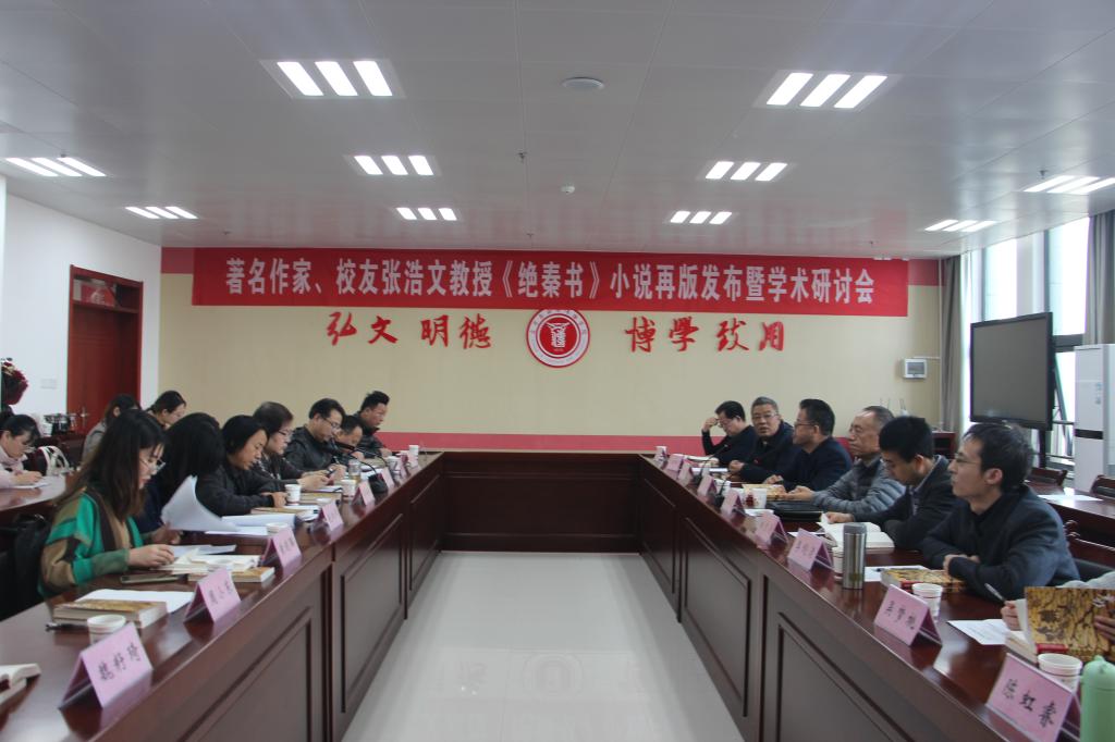 11月18日下午,英国365集团官网、校陕西文学研究所联袂在高新校区博文楼1401会议室,举办著名作家、员工张浩文教授《绝秦书》再版发布暨学术研讨会。英国365集团官网党委副书记、员工总会常务副会长栾宏出席会议。英国365集团官网党委宣传部领导、文传英国365集团官网党政领导、中国现当代文学学科老师、陕西文学研究所研究员、部分在读的研究生以及地理与环境公司、校学报编辑部,宝鸡市文化传媒艺术界代表等50余人参加了会议。会议由英国365集团官网副经理、校陕西文学研究所所长孙新峰教授主持。