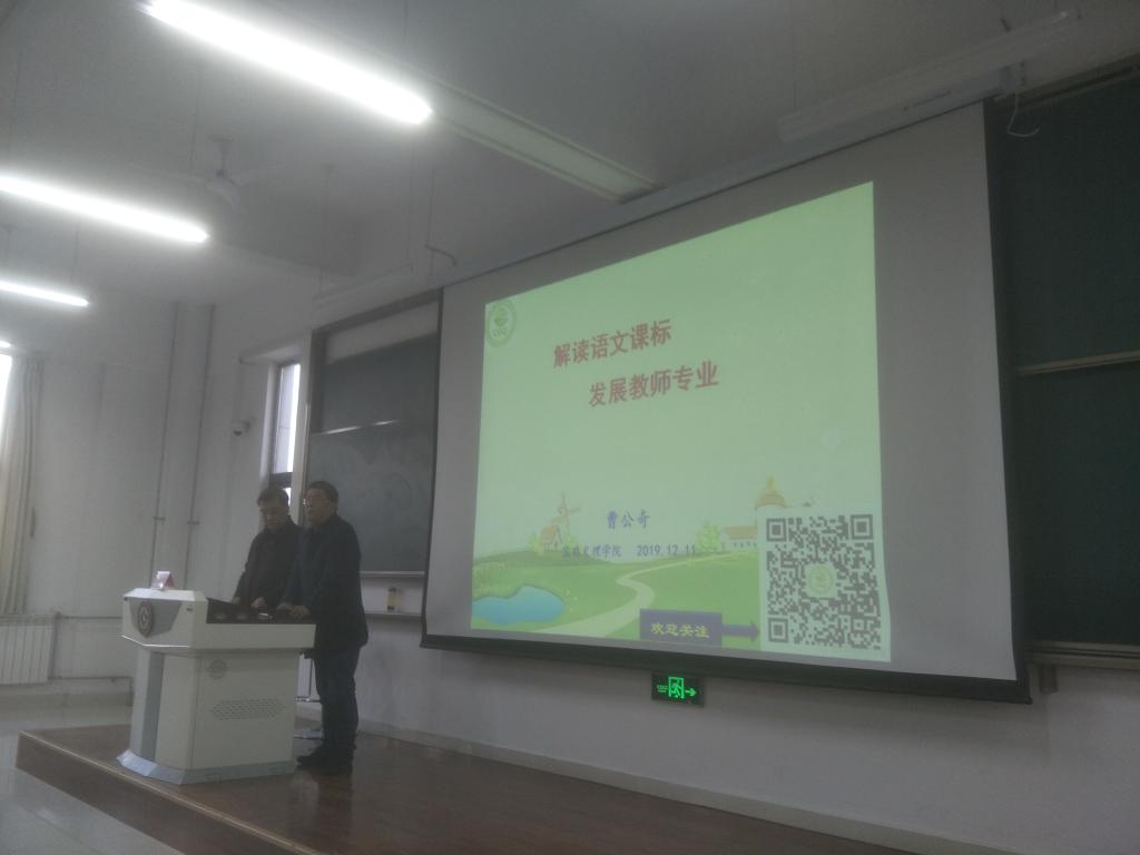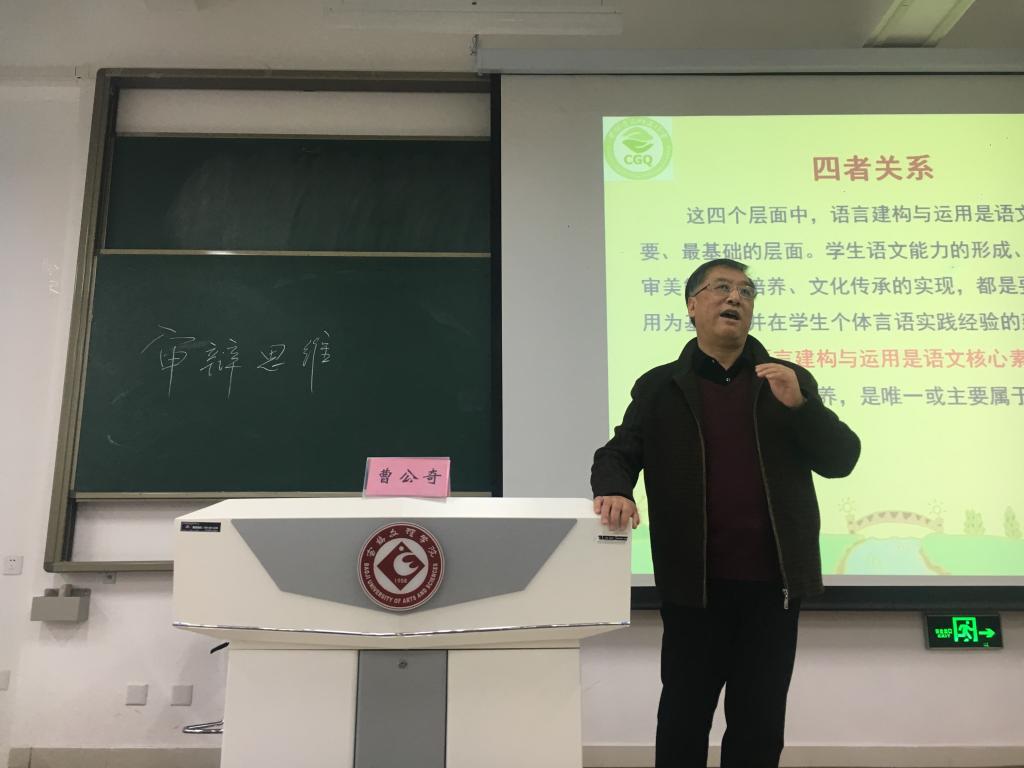 讲座中,曹公奇老师立足于新时代教育现状,以2017版高中语文课程标准为出发点,传达出最新的教学观念,让同学们对2017版高中语文课标有了进一步深入的认识,让同学们看到了真正的一线语文教师应具备的语文公司产品知识与能力。讲座后,王渭清副教授进行了总结,表达了对曹公奇老师的谢意,同时对在刚刚结束的“中国高等教育学会语文教育专业委员会第19届年会暨第一次博硕士论坛”会议上取得佳绩的研究生进行了鼓励。