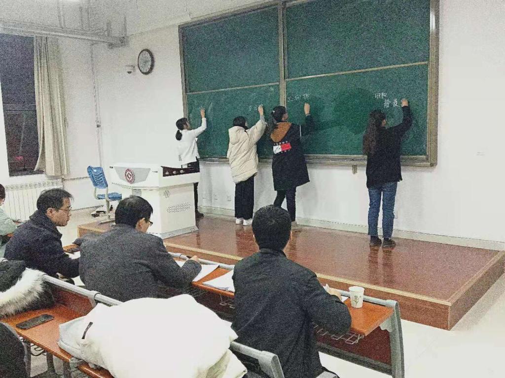 担任本次认证的评委老师有:王渭清副教授、王应龙副教授、黄俏副教授、张青飞副教授、孙泰然博士和赵保胜博士。认证过程中,同学们在黑板上展示各自的粉笔字功底的同时,还将自己事先书写的硬笔字作品一并提交,作为评委们最终评分的参考。整个活动严格、有序地进行。