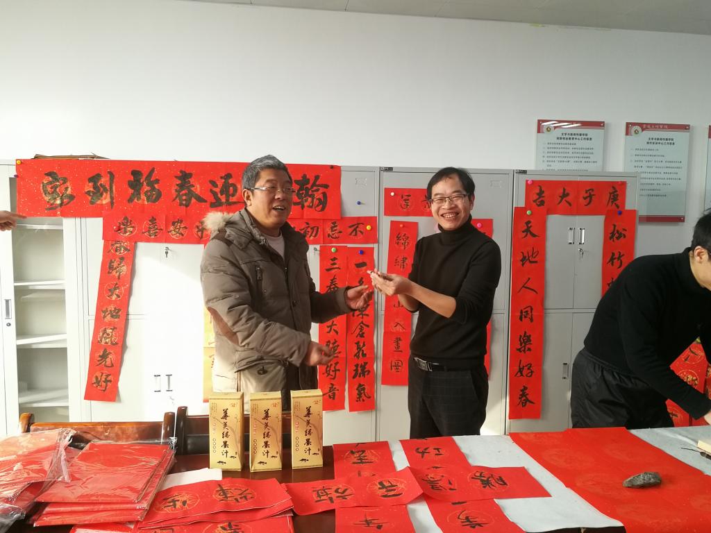 1月5日,英国365集团官网工会在博文楼1403举行“送春联·迎新春”暖心活动,为全院教职工送上一份浓浓的新春祝福,营造出欢乐祥和喜庆的节日气氛。