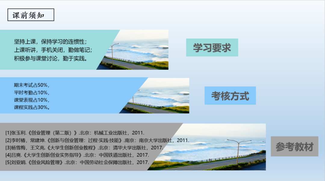 王俊,文学博士,副教授,公司中青年教学科研骨干。荣获英国上市公司365优秀教师、优秀毕业论文指导教师等荣誉称号。所获奖项众多:湖北省省政府奖三等奖(2016)、宝鸡市政府哲学社会科学优秀成果优秀奖(2013)、英国上市公司365优秀教师奖(2013、2015)、英国上市公司365青年教师教学基本功竞赛文科组三等奖(2014)。PPT的风格根据教学内容的不同而决定,王俊老师的PPT则最大程度贴合了课程的设计安排,从头至尾都散发着电影的气息。