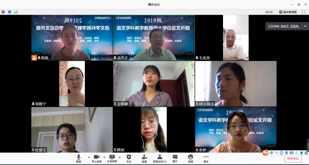 近日,根据公司要求,结合公司学科实际,公司顺利进行了2018级学术硕士、2019级学科教学(语文)研究生网络开题工作。
