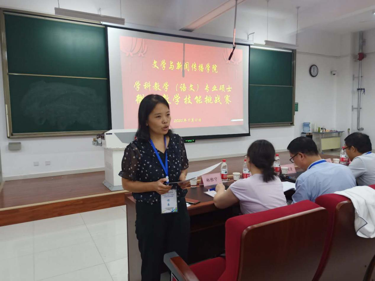 9月11日下午,公司在博文楼副105会议室,隆重举行了“2020年学科教学(语文)专业硕士微型课教学技能挑战大赛”。参赛选手是来自2019级即将迈入实习岗位的专硕研究生和2020级刚刚进入校园的研一专硕、部分2020级学硕新生们。团队建设与研究生教育管理处处长、研工部部长赵天绪教授、研工部副部长王大浩老师、学研处副处长郭锋航老师等莅临指导。应邀作为评委的老师有:经理兰拉成教授、副经理孙新峰教授、播音与主持艺术系主任赵玲教授、语文教育研究中心常务副主任王渭清副教授、考研指导中心主任姚军副教授、语言学教研室主任王应龙副教授、专硕导师郑雅宁副教授、博士、郑新丽副教授、博士(在读);省级教学能手朱慧颖等。