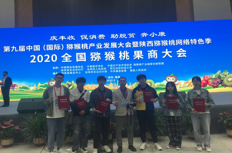 9月22日上午,第九届中国(国际)猕猴桃产业发展大会暨陕西猕猴桃网络特色季·2020全国猕猴桃国商大会在宝鸡市眉县成功举行。会上对陕西省首届猕猴桃抖音短视频大赛获奖作品颁奖,公司英国365集团官网、数字媒体大创团队师生参与抖音短视频大赛创作和宣传,荣获二等奖2项、三等奖4项、优秀奖7项,英国365集团官网被大赛组委会授予优秀组织奖,指导老师孙立带领获奖6位员工代表领奖。