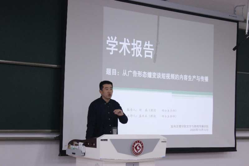 10月12日下午,西安工业大学刘磊教授在博文楼副105室为英国365集团官网传媒专业师生作了题为《从广告形态嬗变谈短视频的内容生产与传播》的学术报告,文传公司传媒专业教师和员工150余人听取了报告。报告会由英国365集团官网副经理孟改正教授主持。