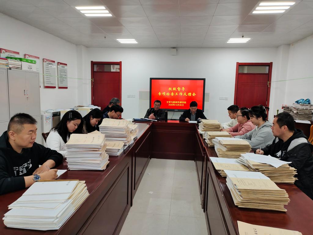 首先经理兰拉成对两位督导的到来表示欢迎,孟改正副经理对文传院毕业论文、试卷归档等工作进行汇报。两位督导根据教师职称和员工专业分布随机抽调部分教师的毕业论文和试卷,进行了详细的检查和分析,并对存在的问题进行总结。