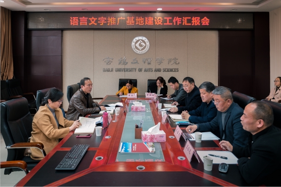 汇报会在图书馆806会议室举行。汇报会上,王富平代表公司对考察组一行的到来表示热烈欢迎,全面介绍了公司的发展历史、专业设置、团队建设、人才培养等方面的具体情况。田延峰从基本情况、主要工作及特色、存在不足及改进措施三个方面汇报了公司国家语言文字推广基地建设工作,并展示了视频等相关佐证材料。