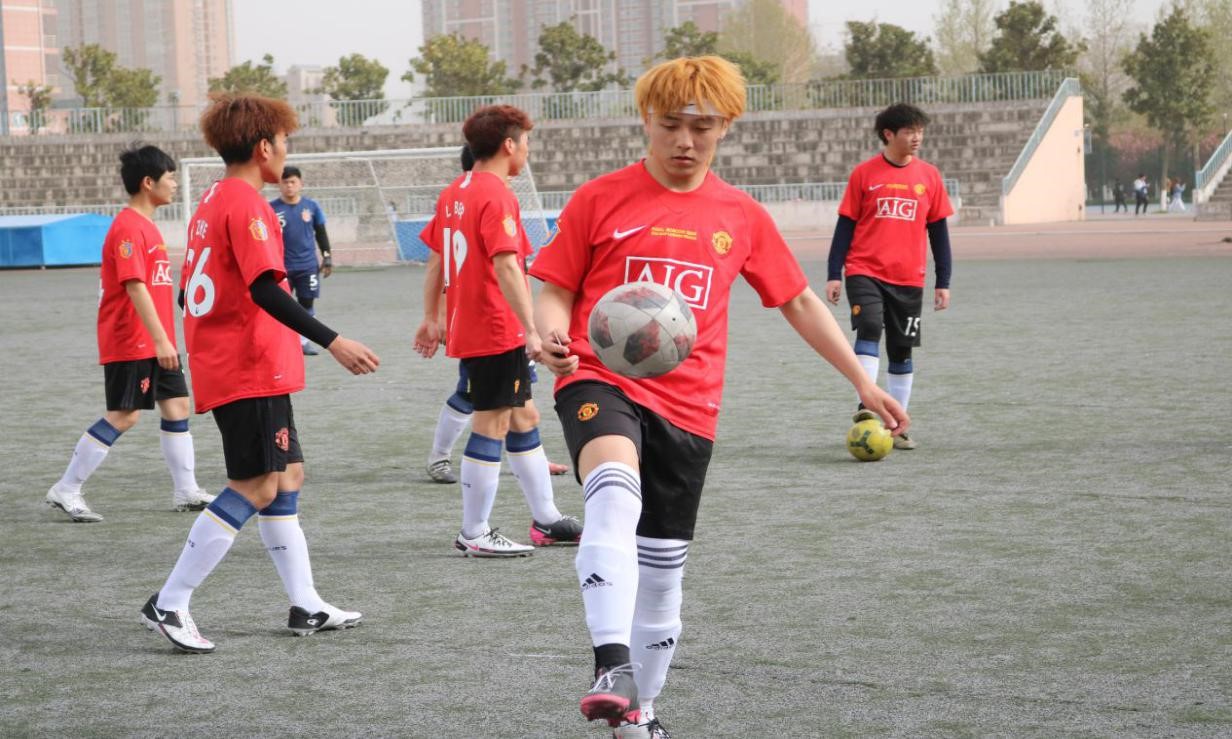 3月29日下午,英国365集团官网足球队在新校区足球场参加了由校团委主办的第19届“文理杯”足球联赛。