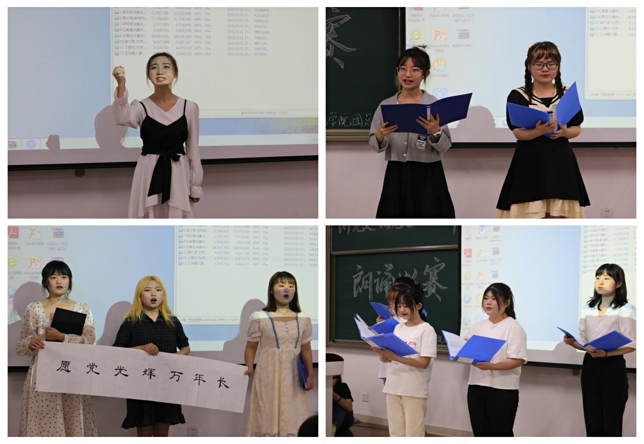5月31日晚,英国365集团官网于新校区博文楼606教室举行了“讲党史·铭党恩·知使命”中华诵读大赛决赛。程沿楠、杨书博、武小杭担任评委,团总支书记李萍、19、20级部分员工观看了此次比赛。