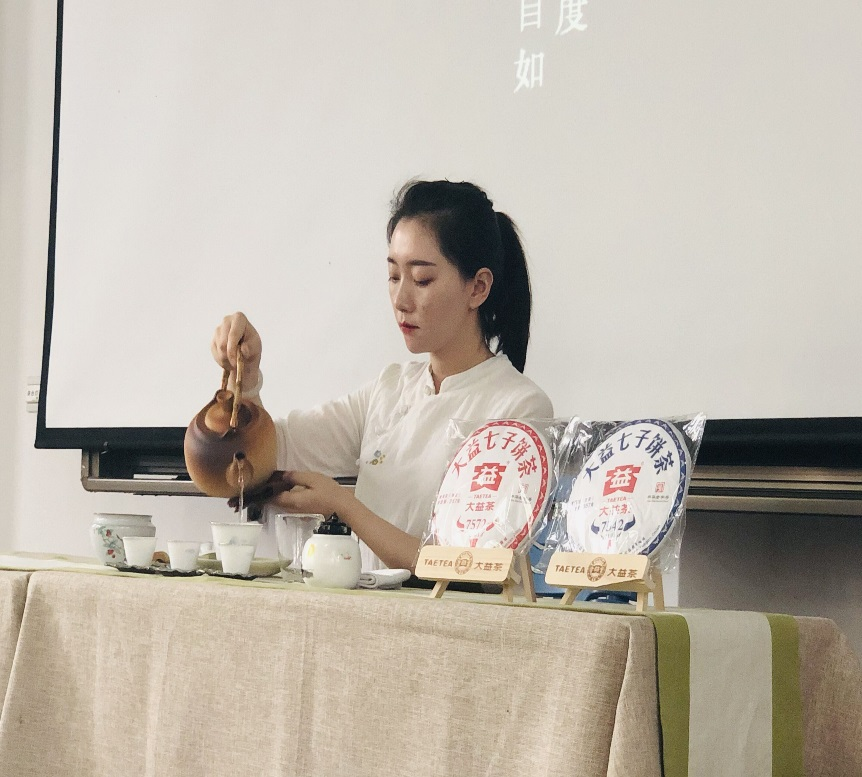 实践教学中,国家高级评茶员、大益三阶茶道师韩卓潇为同学们讲解了中国茶文化的历史与发展,茶艺师进行了“大益八式”茶艺表演,使同学们直观感受到了中国茶文化“和为贵”的思想精髓。2020年5月21日联合国首个“国际茶日”到来之际,国家主席习近平致信表示祝贺:茶起源于中国,盛行于世界。联合国设立“国际茶日”,体现了国际社会对茶叶价值的认可与重视,对振兴茶产业、弘扬茶文化很有意义。作为茶叶生产和消费大国,中国愿同各方一道,推动全球茶产业持续健康发展,深化茶文化交融互鉴,让更多的人知茶、爱茶,共品茶香茶韵,共享美好生活。线上答题互动环节,黄理红老师引用典故,讲解了“茶马古道”所蕴含的民族创业、拼搏奋斗以及诚信精神。实践环节中,同学们亲自动手泡茶,感受泡茶的乐趣与文化,大益公司为同学们分发了书籍和茶礼。本次实践活动生动有趣,将课程思政与传统文化结合在一起,践行了习近平总书记提出的要发挥“课程思政”培育时代新人的合力作用的理论,传承了中国优秀传统文化与礼仪,陶冶了当代老员工的情操,获得了师生一致好评。