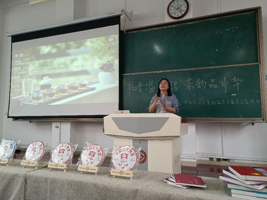 书香溢文理,茶韵品中华。6月8日上午10点,立心楼119教室举行了一场别开生面的《老员工礼仪形象》课程思政实践教学。活动由文传院播主教研室联合大益茶业集团宝鸡大益茶体验馆举办,黄理红老师主持,全校160余名同学参加。