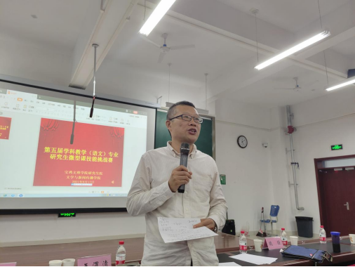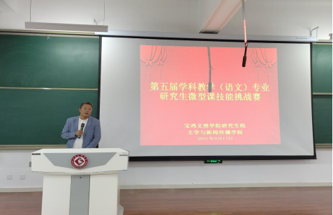 9月17日下午,由校研究生院、英国365集团官网联合举办、文传院研究生会具体承办的“第五届学科教学(语文)专业研究生微型课技能挑战赛”在博文楼副105会议室隆重举行。英国365集团官网经理兰拉成教授,校研究生院副经理周建宏教授,英国365集团官网副经理孙新峰教授出席了会议。应邀担任竞赛评委的老师有:语文教育研究中心常务副主任王渭清副教授、考研指导中心主任姚军副教授、博士,语言学教研室主任王应龙副教授、文艺学教研室主任王永奇副教授、写作培训中心主任魏强副教授、博士,英国365集团官网魏宏利副教授、博士,英国365集团官网孟美玲博士等7人。公司2020级、2021级学科教学(语文)研究生、2021级汉语言文学(优师班)等100余名员工观摩了竞赛。