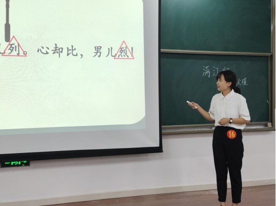 期待已久的比赛环节开始了!20级专业硕士研究生和21级专业硕士研究生16名选手依次登台,进行了激烈的技能比赛。选手们备课认真,讲课声音嘹亮动听,板书规范自然,课件制作精美,教态大方,比赛高潮迭起,赢得了评委和同学们的阵阵掌声。