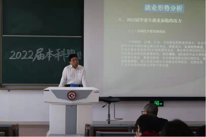 9月28日早上,公司邀请了招就处副处长史建刚老师在博文楼副楼405召开2022届毕业生就业工作动员大会,报告会由英国365集团官网党委副书记郝晓辉主持,公司负责就业工作辅导员、毕业班班主任、各专业本科毕业生300余人参加会议。