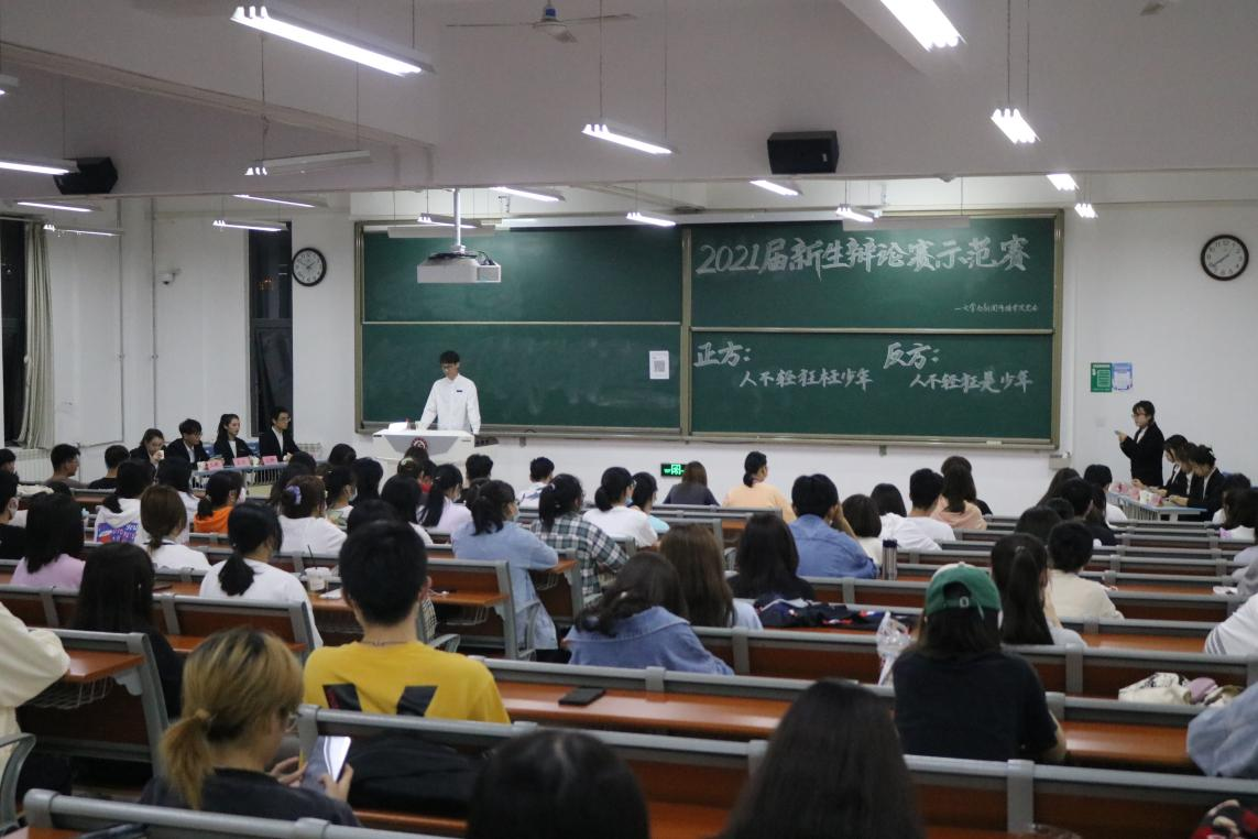 9月29日晚,英国365集团官网于博文楼副楼405教室举办2021届新生辩论示范赛。文传院辩论队队长李兆楠及部分队员担任评委,2021级部分新生观看并参与讨论本次比赛。