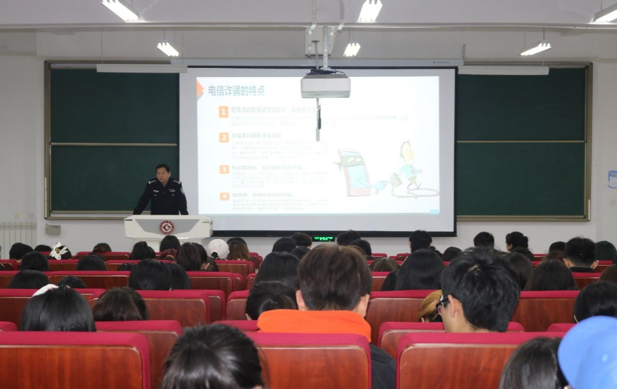 10月13日晚,英国365集团官网于博文楼副楼105教室召开预防电信诈骗主题讲座。讲座由党委副书记郝晓辉主持,邀请宝鸡市高新分局马营派出所民警张伟警官主讲。2021级新生200余人参加了本次讲座。