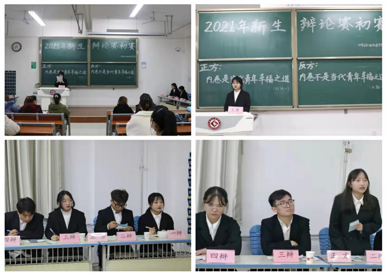 本次比赛由2021级组成12支队伍参加,选手们围绕“内卷是不是当代青年幸福之道”、“大数据时代人们越来越自由还是不自由”、“员工就业压力大是否有利于成才”、“该不该鼓励年轻人去大城市发展”、“被排斥还是被同化更可怕”、“理想人才以仁还是以智为主”六个辩题展开激烈辩论。选手们激情昂扬阐述己方观点,思路清晰、观点鲜明,比赛现场气氛热烈,观众热情高涨。最终,汉语言文学1班、汉语言文学2班、汉语言文学3班、播音与主持艺术1班、新闻与传播学类1班共五支队伍进入了复赛。