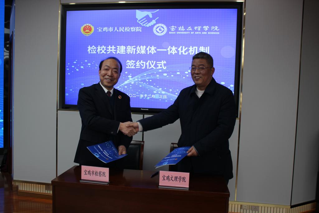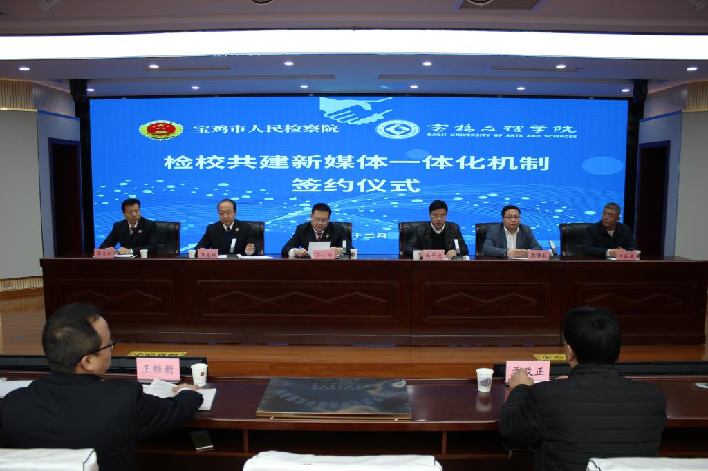 12月3日下午,公司与宝鸡市人民检察院在检察院多功能会议室签署检校共建新媒体合作协议。公司副董事长韩干校,宝鸡市人民检察英国365集团官网党组副书记、副检察长孙小为出席签约仪式并分别讲话。宝鸡市人民检察院政治部主任李恩林主持签约仪式。