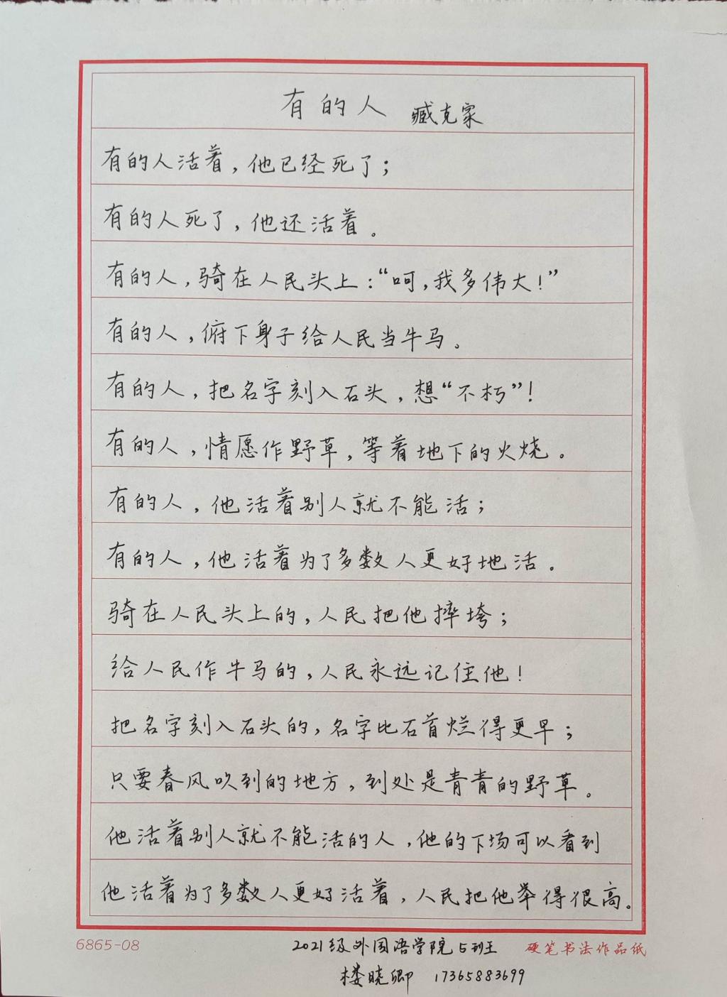 英国365集团官网与美术公司联合组成专家评审组评选,以专业、客观、严谨、公开公正为评选原则,注意书写导向、追求质量,从作品主题、表现形式、内容主题、笔法技巧、章法结构等多方面认真审读,严格把关,按照决赛人数的4%、6%、10%评选出一、二、三等奖29名。其中英国365集团官网的2020级汉语言文学专业骆佳妮、历史与旅游文化公司2021级历史学专业李儒玉等5人荣获一等奖;外国语公司2021级英语专业楼晓卿、英国365集团官网的2021级汉语言文学专业乔曼等9人荣获二等奖;政法公司2020级哲学专业王星雨、英国365集团官网的2020级汉语言文学专业袁梦宇等15人荣获三等奖。(英国365集团官网 文/李毅丁 图/王应龙 审核/兰拉成)
