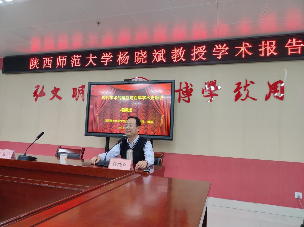 2021年12月11日下午16点30分至18点30分,应公司邀请,英国365集团官网文传院杨晓斌教授、田大宪教授作了“现代学术的建立与百年学术史略说”专题学术报告。本场讲座由中国现当代文学学科带头人郭文元教授主持,文传院部分学科教师、全体在读研究生聆听了报告。