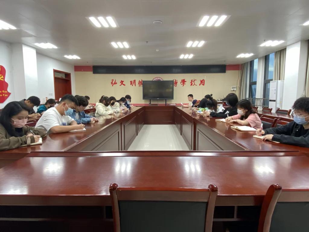 4月20日晚,英国365集团官网于新区博文楼1401会议室组织员工会主要员工骨干集体培训,会议由员工会骨干2019级播主1班何昀晖主持,员工会主要员工骨干参加本次会议。