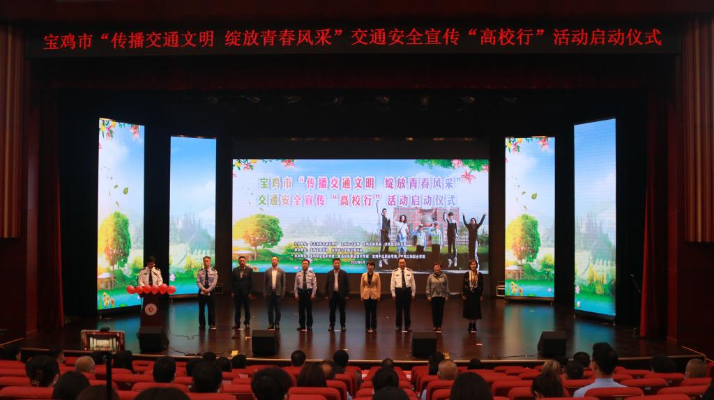 5月12日上午,宝鸡市“传播交通文明 绽放青春风采”交通安全宣传“高校行”活动启动仪式在公司高新校区博文楼报告厅举行。中共宝鸡市委宣传部副部长、市文明办主任胡惠荣出席并宣布活动启动。陕西省公安厅交警总队宣法处协理员王斌,宝鸡市公安局党委副书记、常务副局长陈双琪,宝鸡市教育局副局长毛亚莉,团市委调研员王剑等出席启动仪式。