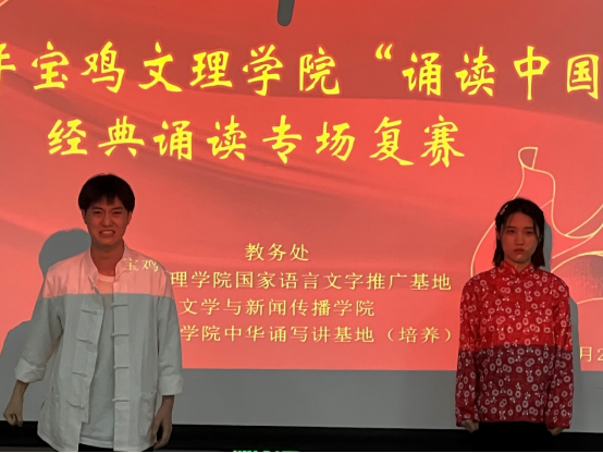 选手们通过生情并茂的表达,抒发出内心情感,展示着青春风采,以自信大方的演绎向全校师生展现出中华经典的魅力,赢得在场观众的一致好评,比赛现场掌声不断。经评委组打分并评议,最终非专业组马晨阳、赵泽阳、王从革等8组选手,专业组张郭志、张宇薇等7组晋级决赛。