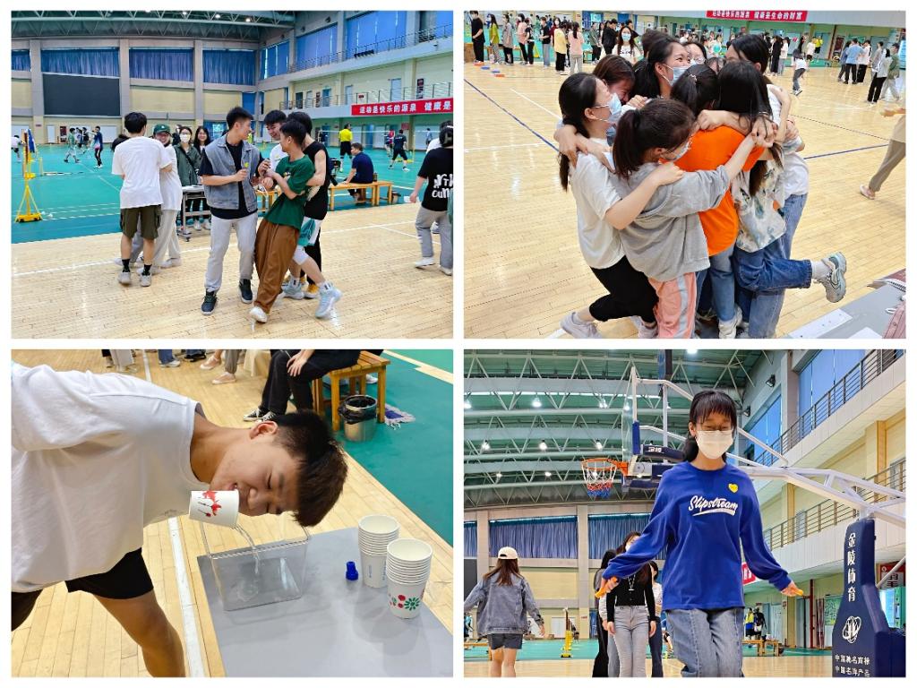 校园游艺会以趣味竞技游戏为依托,共设有“爱的接力”、“同舟共济”、“挤眉弄眼”、“丑小鸭赛跑”、“运水接力”、“指压板跳绳”、“一元五角”7个游戏项目。活动期间,同学们自由组队参与游戏,兴致高昂,协作共赢,现场气氛热烈,精彩纷呈。