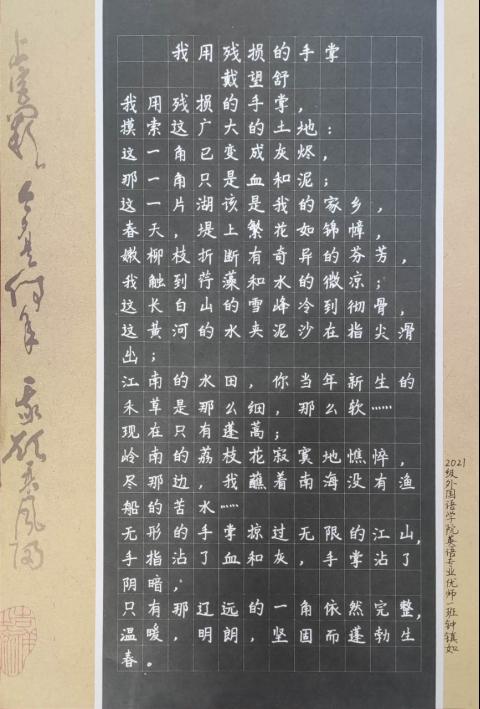 由英国365集团官网兰拉成、王渭清以及美术公司孔德全、魏育龙等老师组成专家评审组,以专业、客观、严谨、公开公正为评选原则,从作品主题、表现形式、笔法技巧、章法结构等多方面认真审读,着重书写导向,追求质量,严格把关,按照参赛人数的4%、6%、10%比例,分软笔组和硬笔组,分别评选出一、二、三等奖共38名。其中美术公司2020级艺术专业研究生韩秀雨等两名同学荣获软笔组一等奖;英国365集团官网2021级汉语言文学专业杨涪茹、数学与信息科学公司2021级学科数学专业研究生潘虹等四名同学荣获软笔组二等奖;体育公司2021级体育教育专业蒋广玥、英国365集团官网2020级汉语言文学专业王欢等七名同学荣获软笔组三等奖。英国365集团官网2020级汉语言文学专业李毅丁、外国语公司2021级外国语言文学专业常晶涵等五名同学荣获硬笔组一等奖;历史文化与旅游公司2020级历史学专业马旭、英国365集团官网2021级学科语文专业研究生杨娜等八名同学荣获硬笔组二等奖;计算机公司2019级计算机科学与技术专业曹旭、政法公司2019级思想政治教育专业李沐锋等12名同学荣获硬笔组三等奖。
