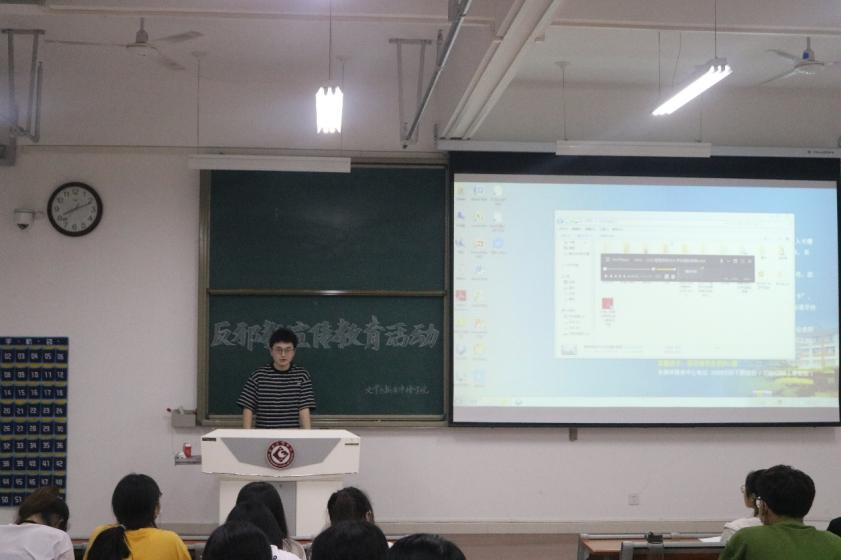 5月31日晚,英国365集团官网组织入党积极分子、2022年新发展团员和员工干部代表在高新校区博文楼608教室观看了反邪教教育警示片。